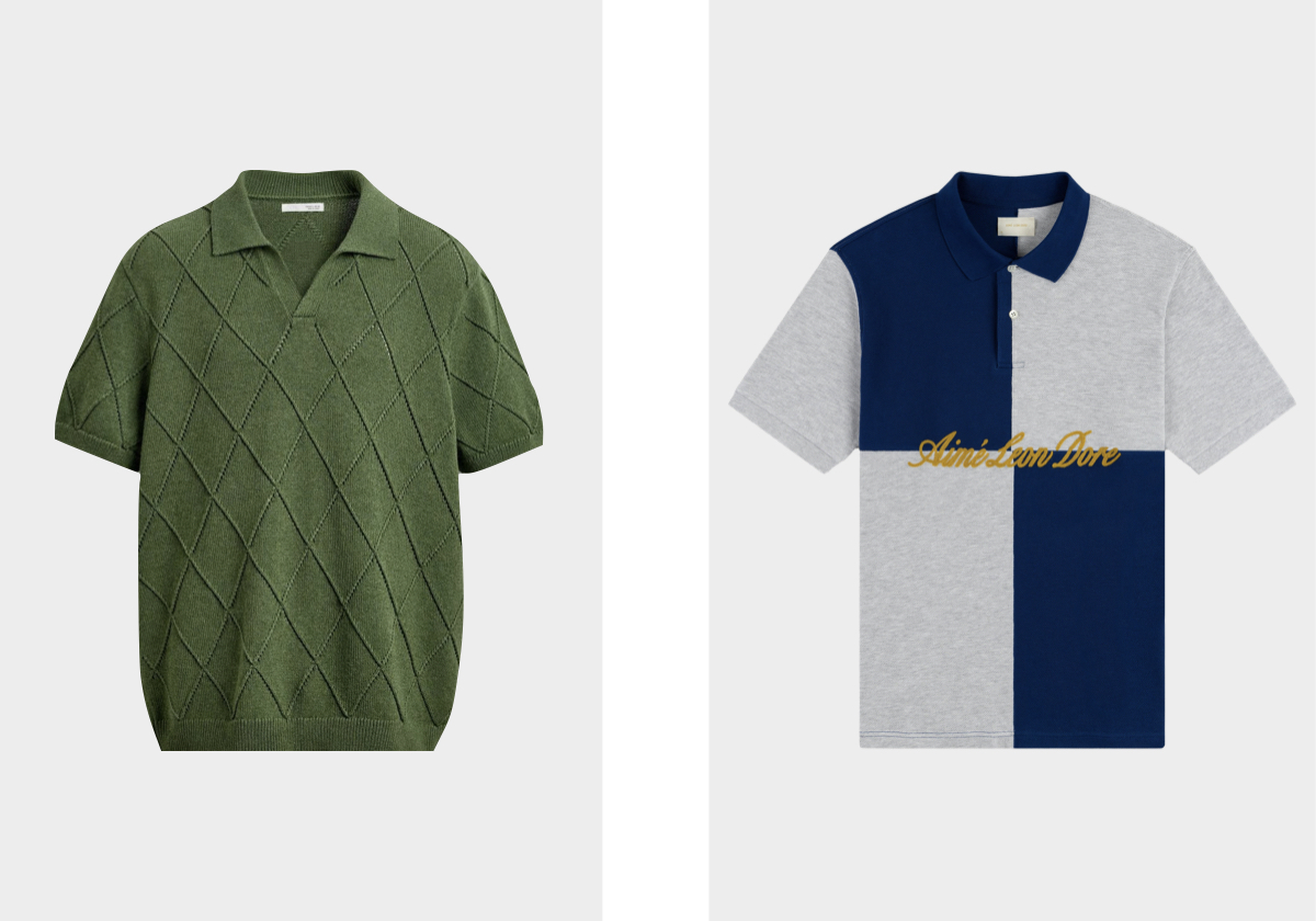 Polo, €29,95, ZARA; polo Color Blocked Pique, €215, AIMÉ LEON DORE.