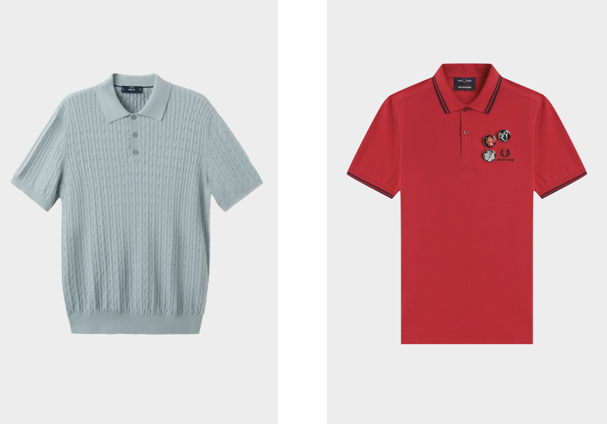 Polo, €35,99, MANGO MAN; polo Kris Van Asche KVA SM2113, €170, FRED PERRRY x KRIS VAN ASCHE.